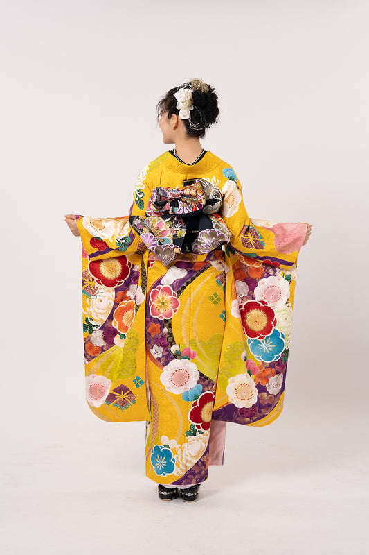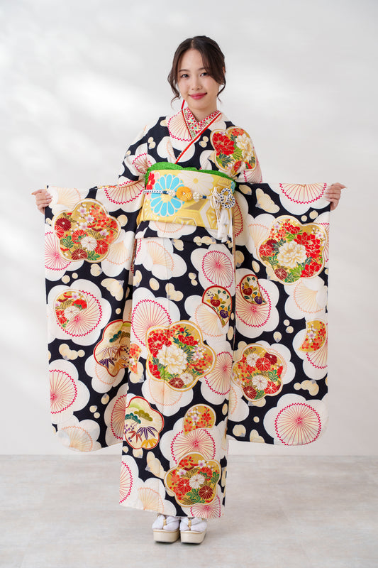 売り切れ黒地 椿柄 振袖【2024.08.10】