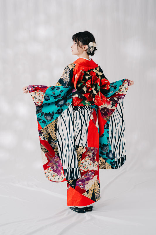 ローラ 藤 扇 正絹振袖【470】