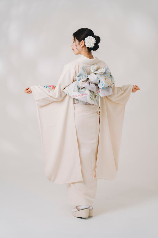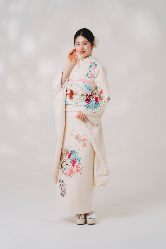売り切れクリーム地 裾ピンク 正絹振袖【117】