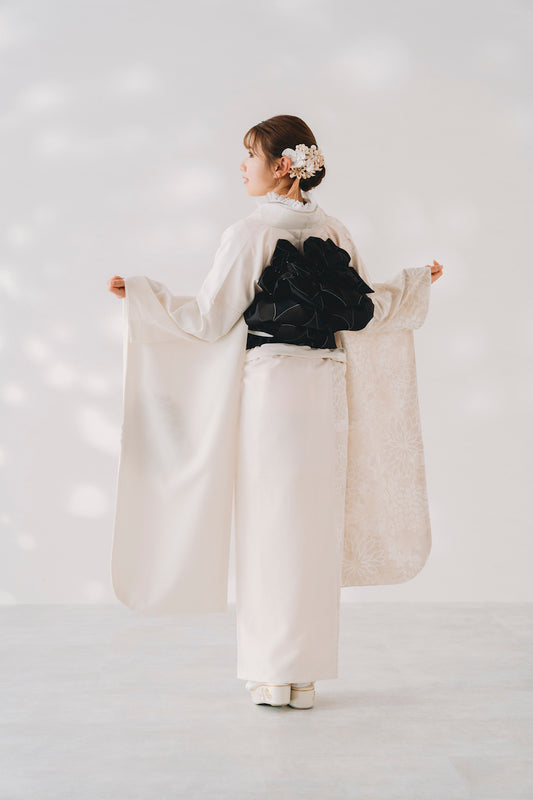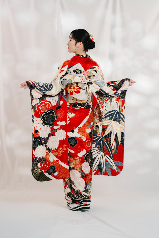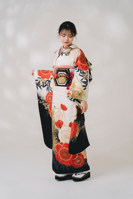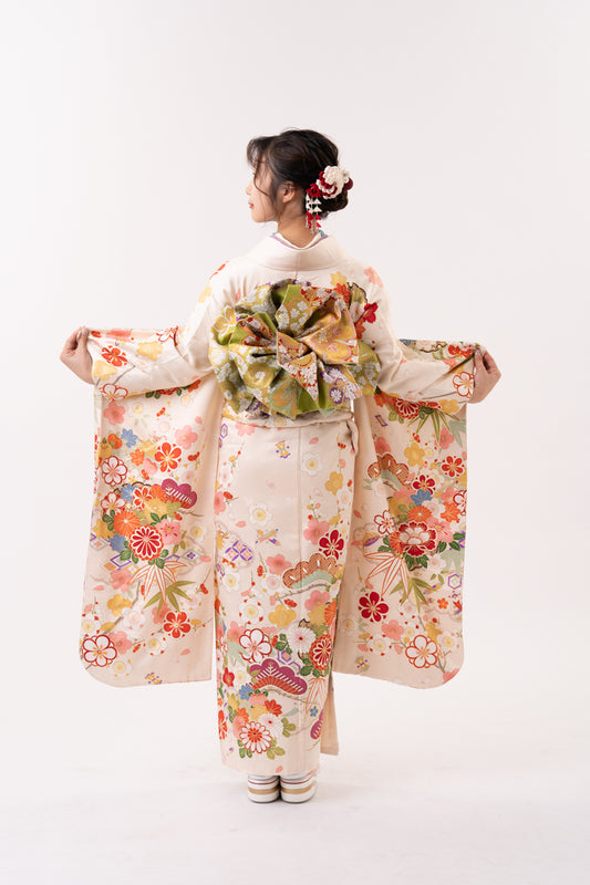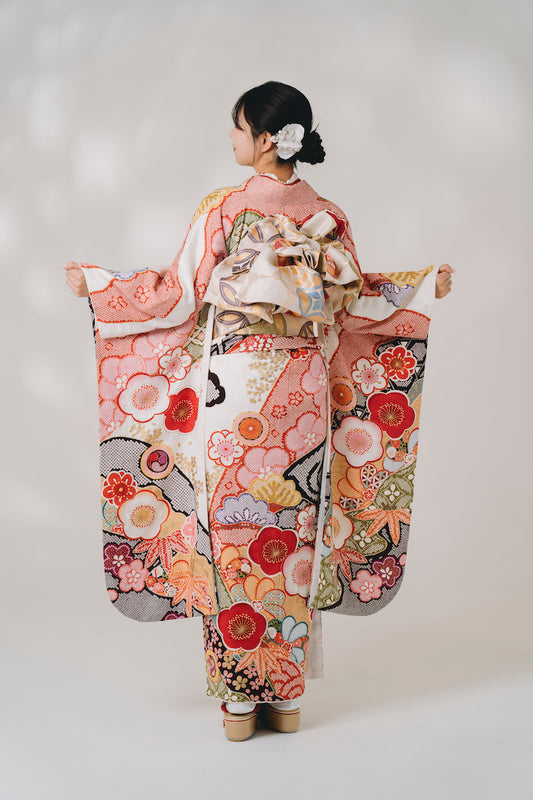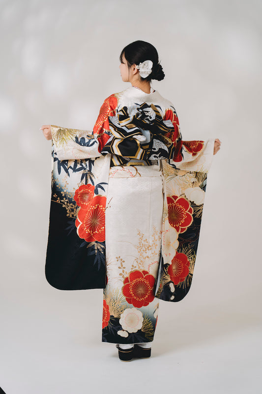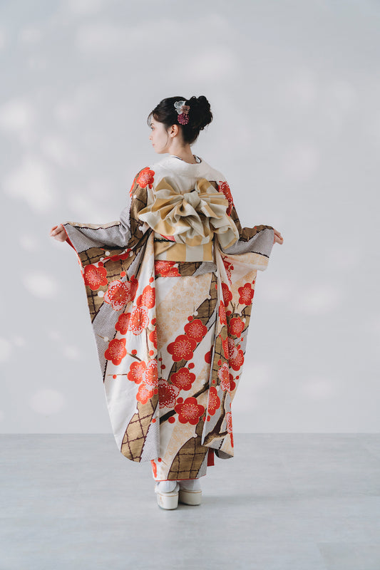 Sold out白地 梅柄 正絹振袖【298】 補正追加