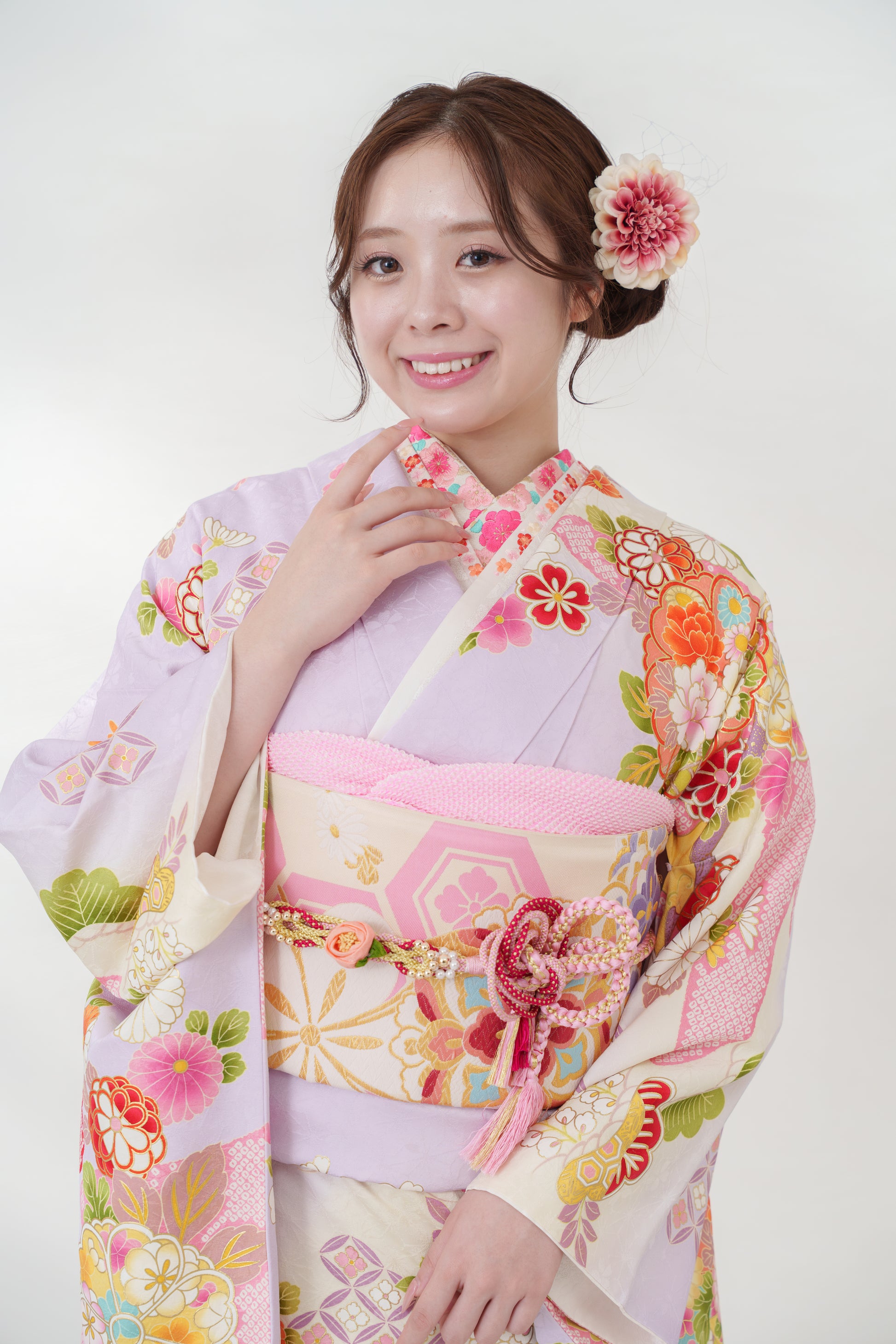 ラベンダー 牡丹 正絹振袖【702】