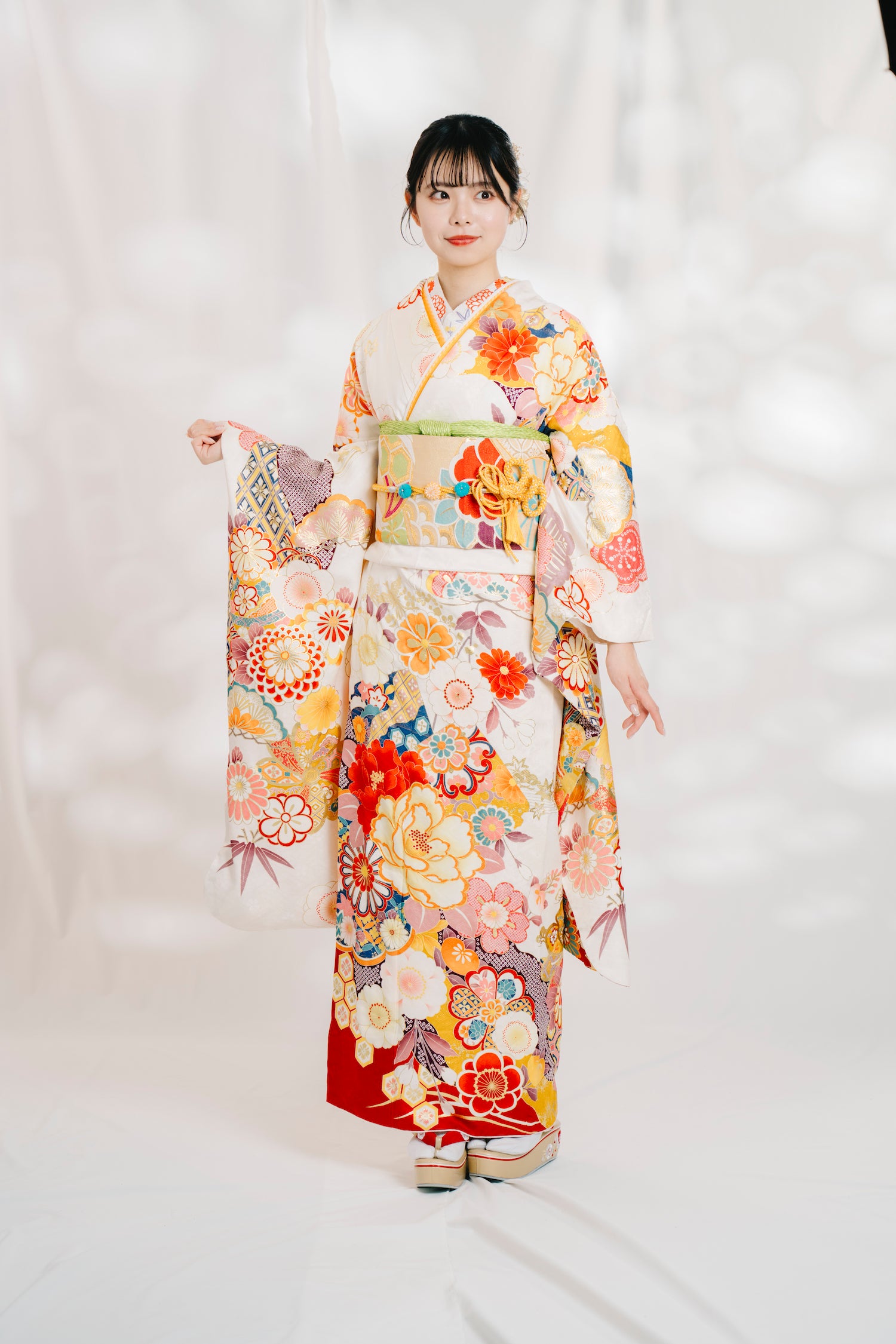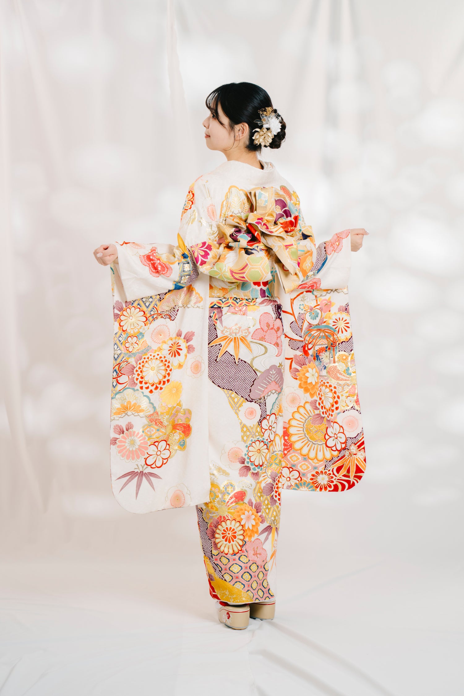 セット内容 振袖 帯 帯締め 帯揚げ 重ね衿 半衿 長襦袢 お草履 バック ※メンテナンス済みのキレイな状態です。