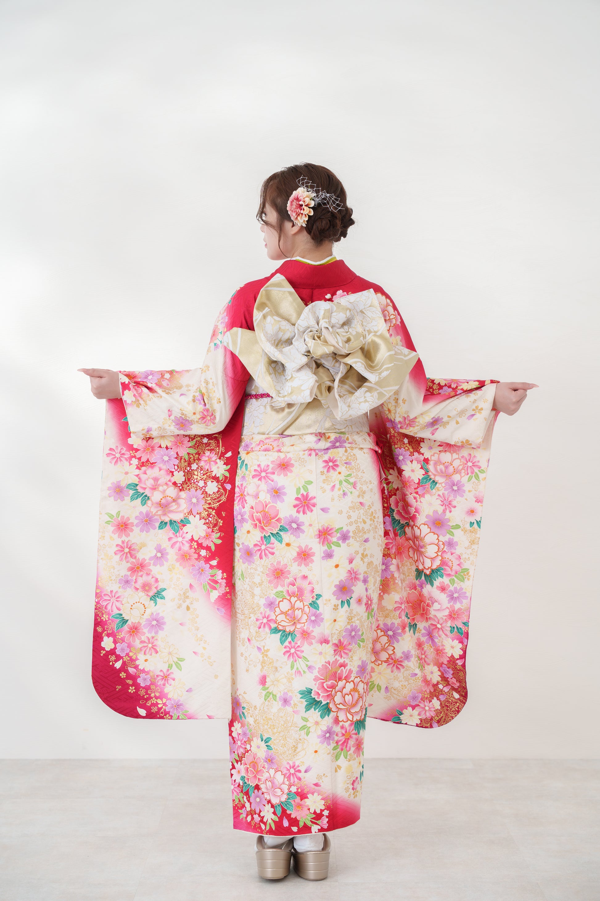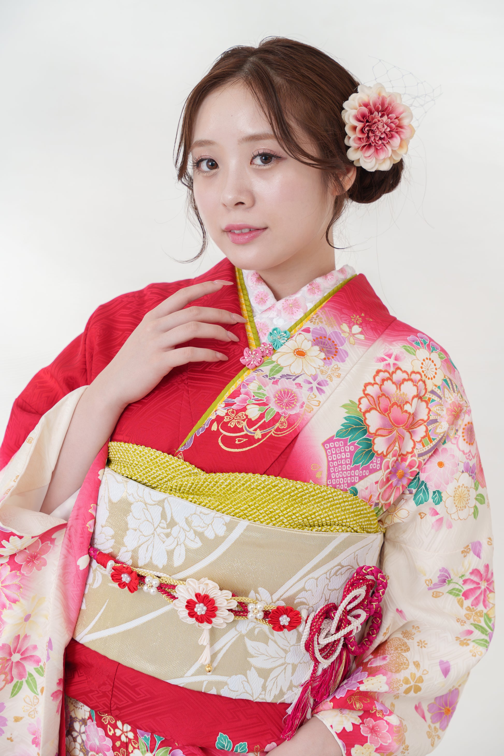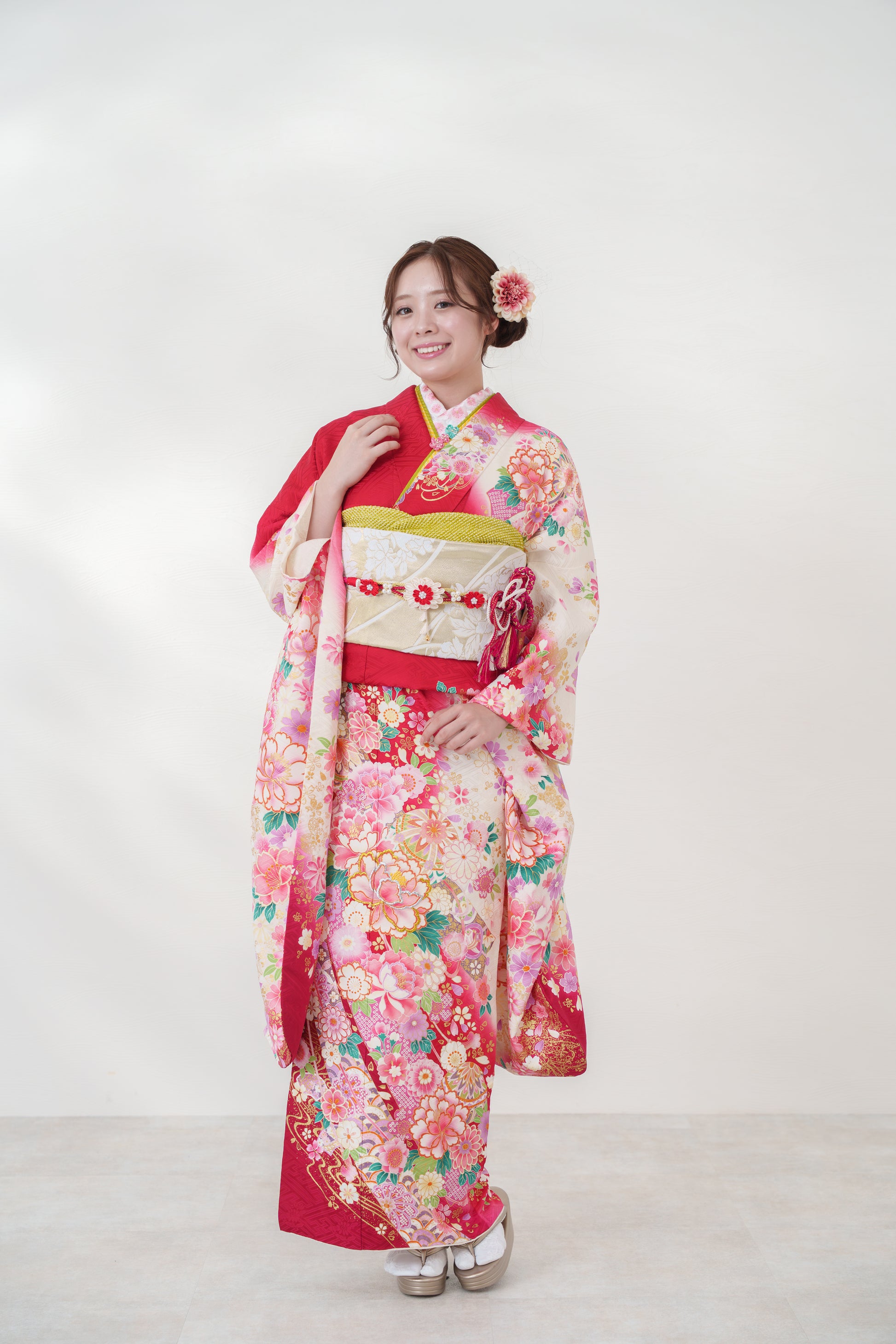 可愛いらしい赤のお振袖で成人式の主役を飾って。