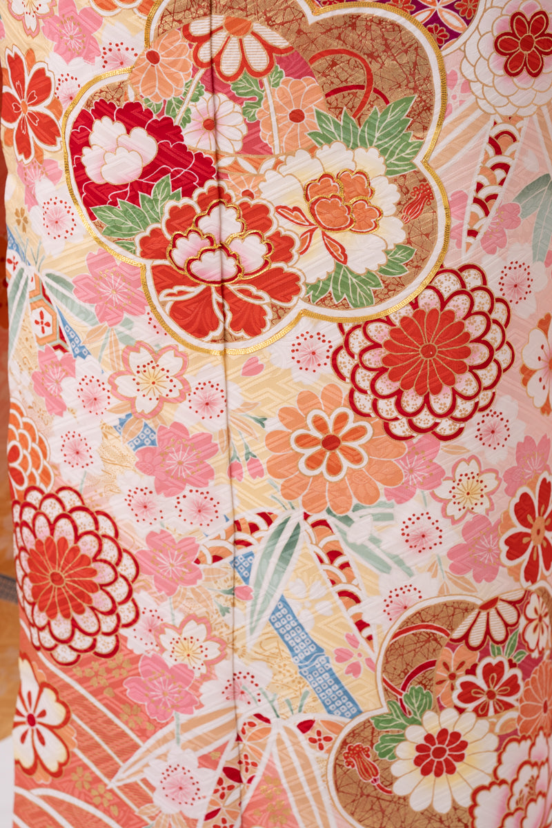 うす黄色 ピンクグラデーション正絹振袖【166】
