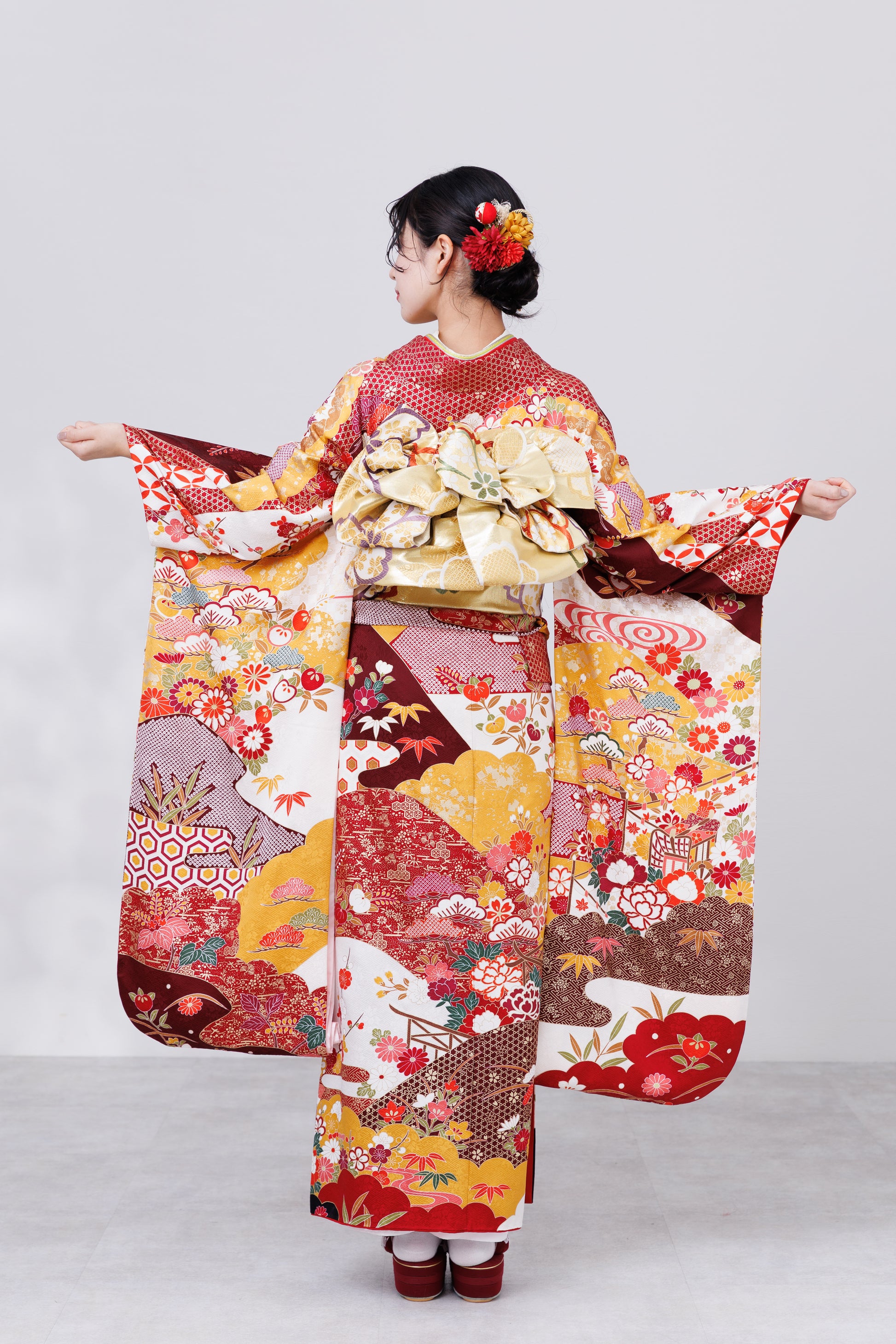 セット内容 振袖 帯 帯締め 帯揚げ 重ね衿 半衿 長襦袢 お草履 バック ※メンテナンス済みのキレイな状態です。