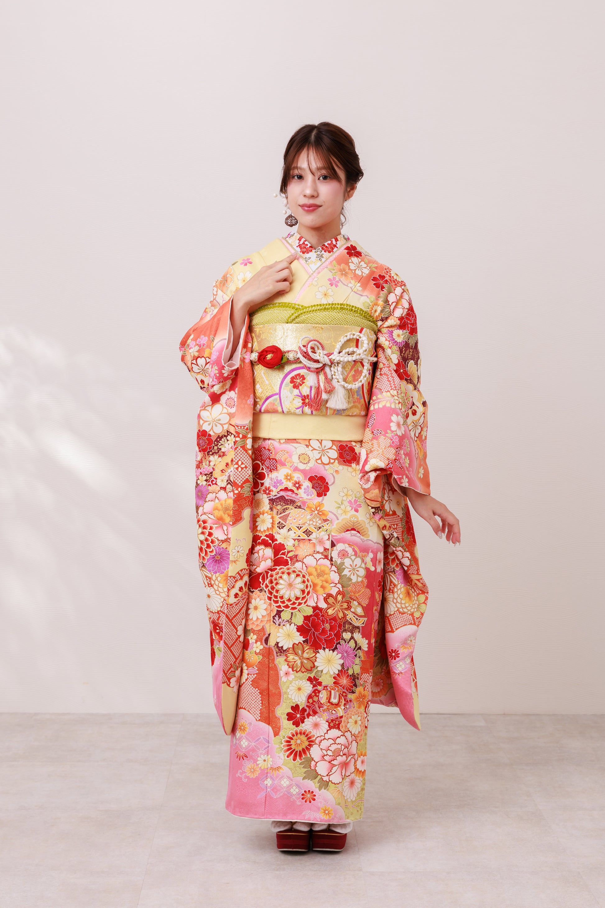 セット内容 振袖 帯 帯締め 帯揚げ 重ね衿 半衿 長襦袢 お草履 バック ※メンテナンス済みのキレイな状態です。