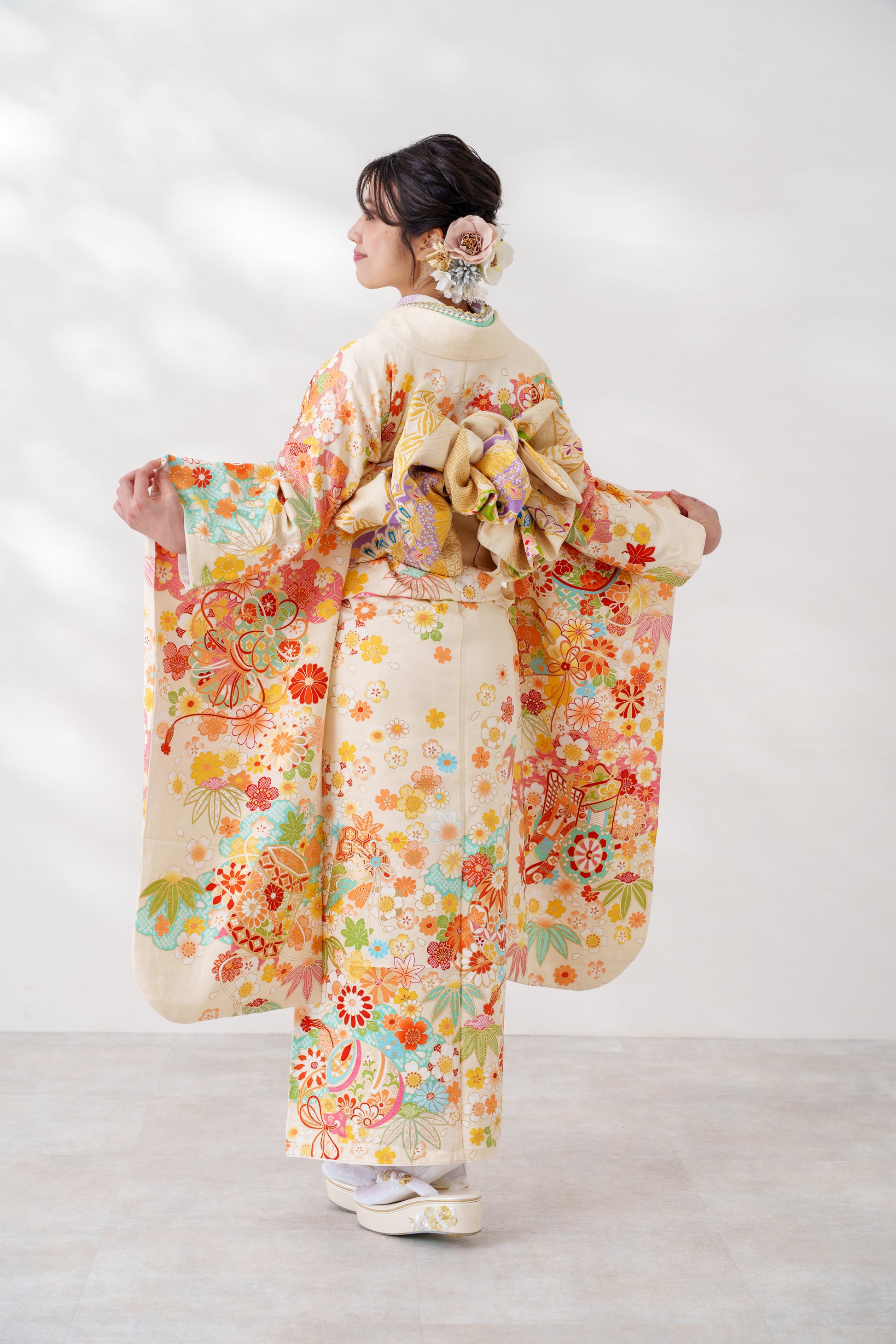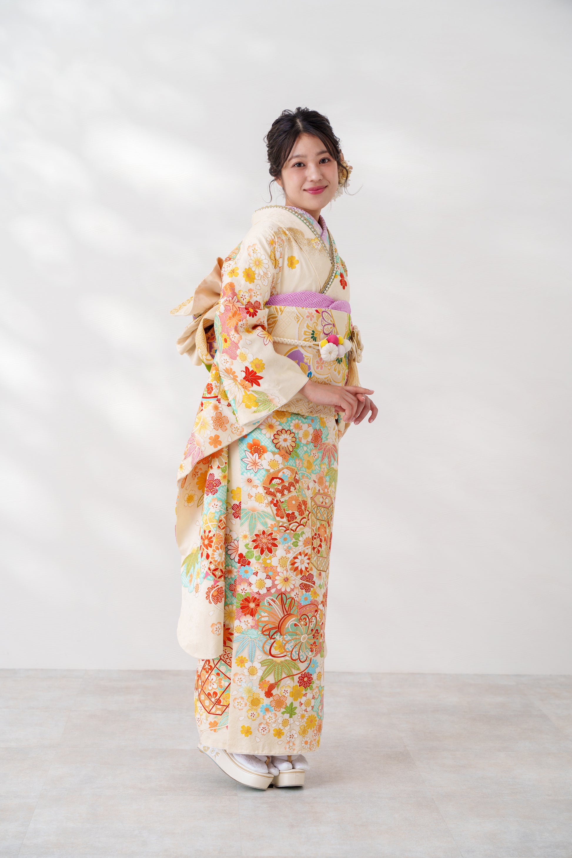 セット内容 振袖 帯 帯締め 帯揚げ 重ね衿 半衿 長襦袢 お草履 バック ※メンテナンス済みのキレイな状態です。