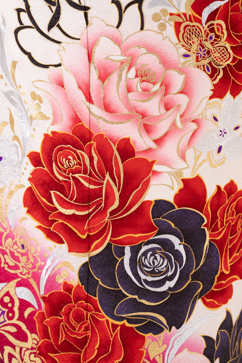 白地 ピンク染め分け 薔薇柄振袖【127】
