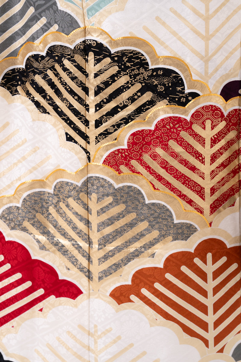 クリーム地 総松柄 正絹振袖【129】