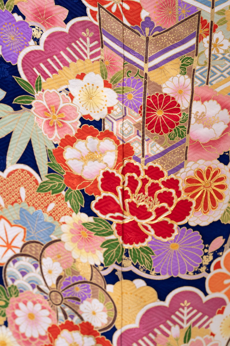 青地 カラフル小花柄 正絹振袖【130】