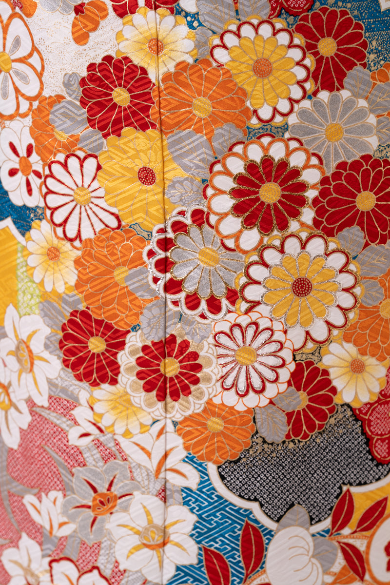 黄色地に鮮やかな青が特徴のお振袖。周りの人と被りたくない方にお勧めの一着。