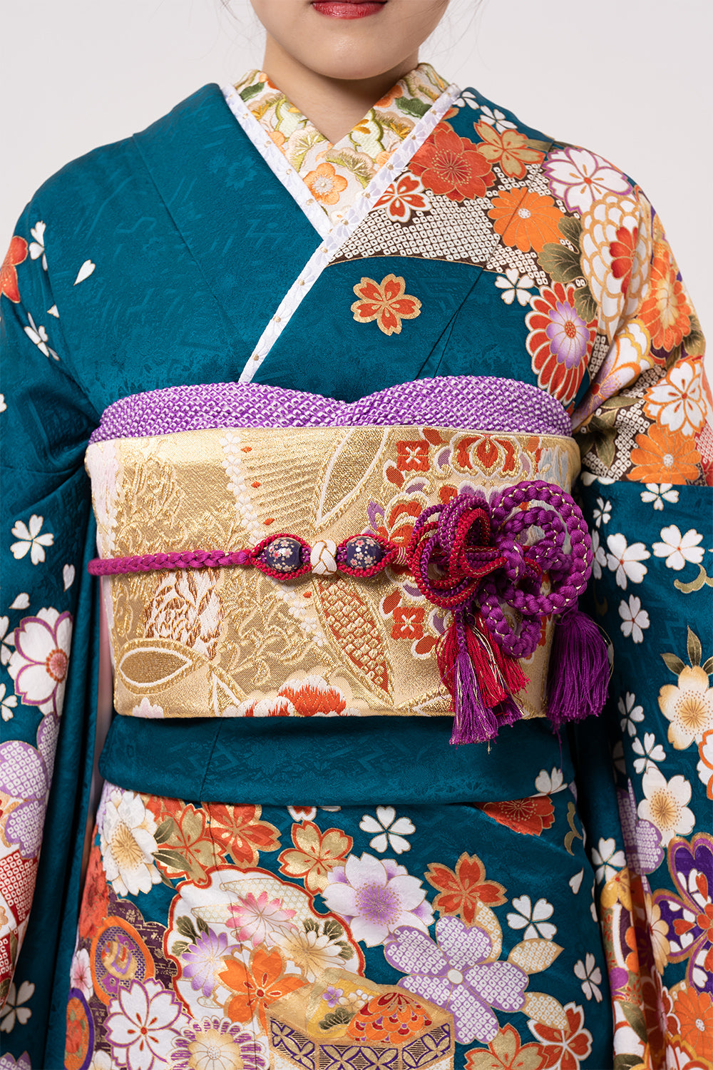 金色の帯を合わせて、より古典的な印象にコーディネートにしています。