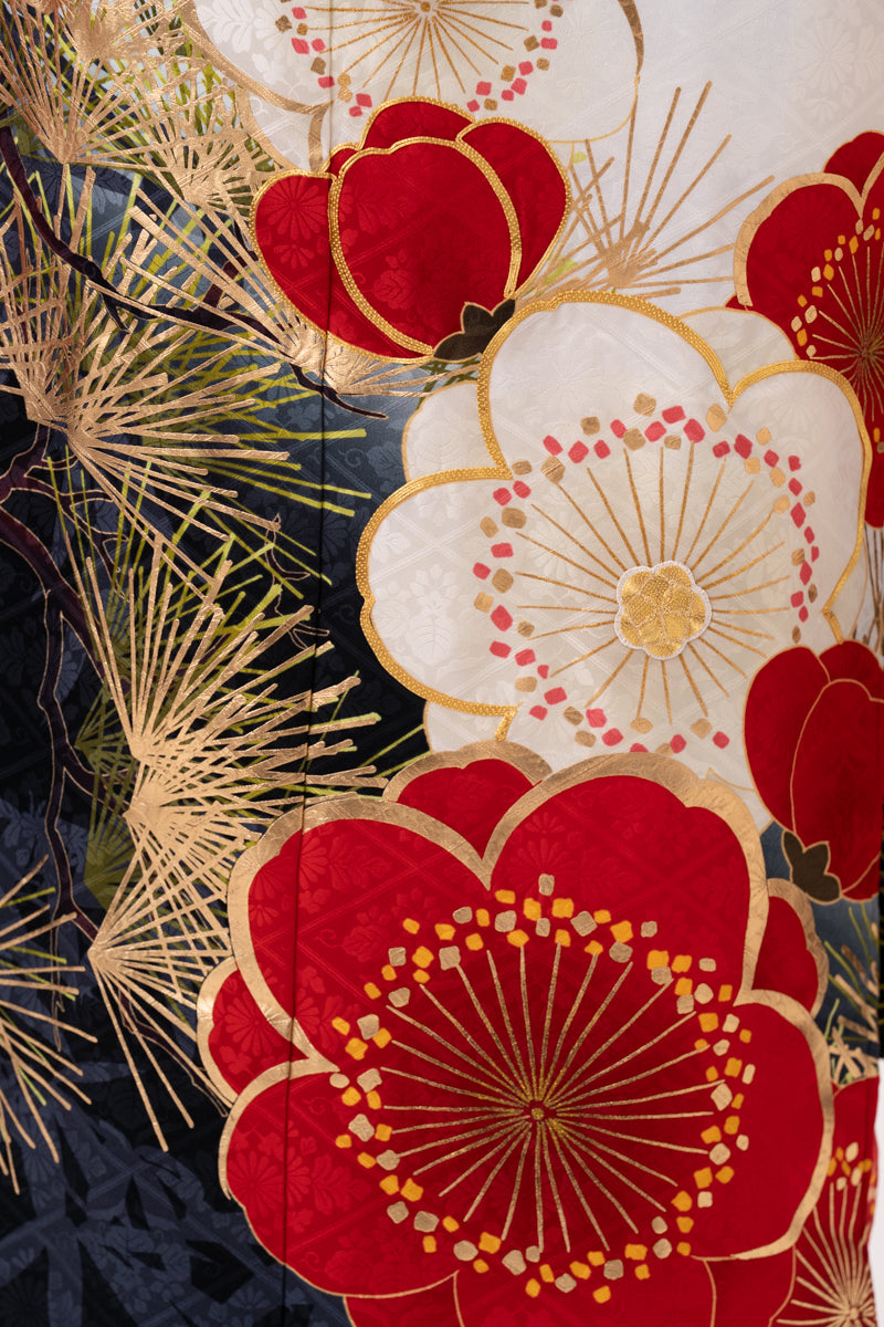 白地 松竹梅柄 正絹振袖【203】