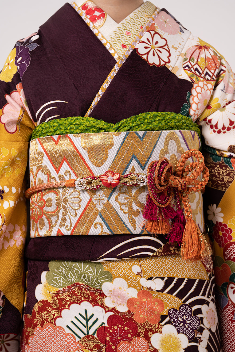 セット内容 振袖 帯 帯締め 帯揚げ 重ね衿 半衿 長襦袢 お草履 バック ※メンテナンス済みのキレイな状態です。
