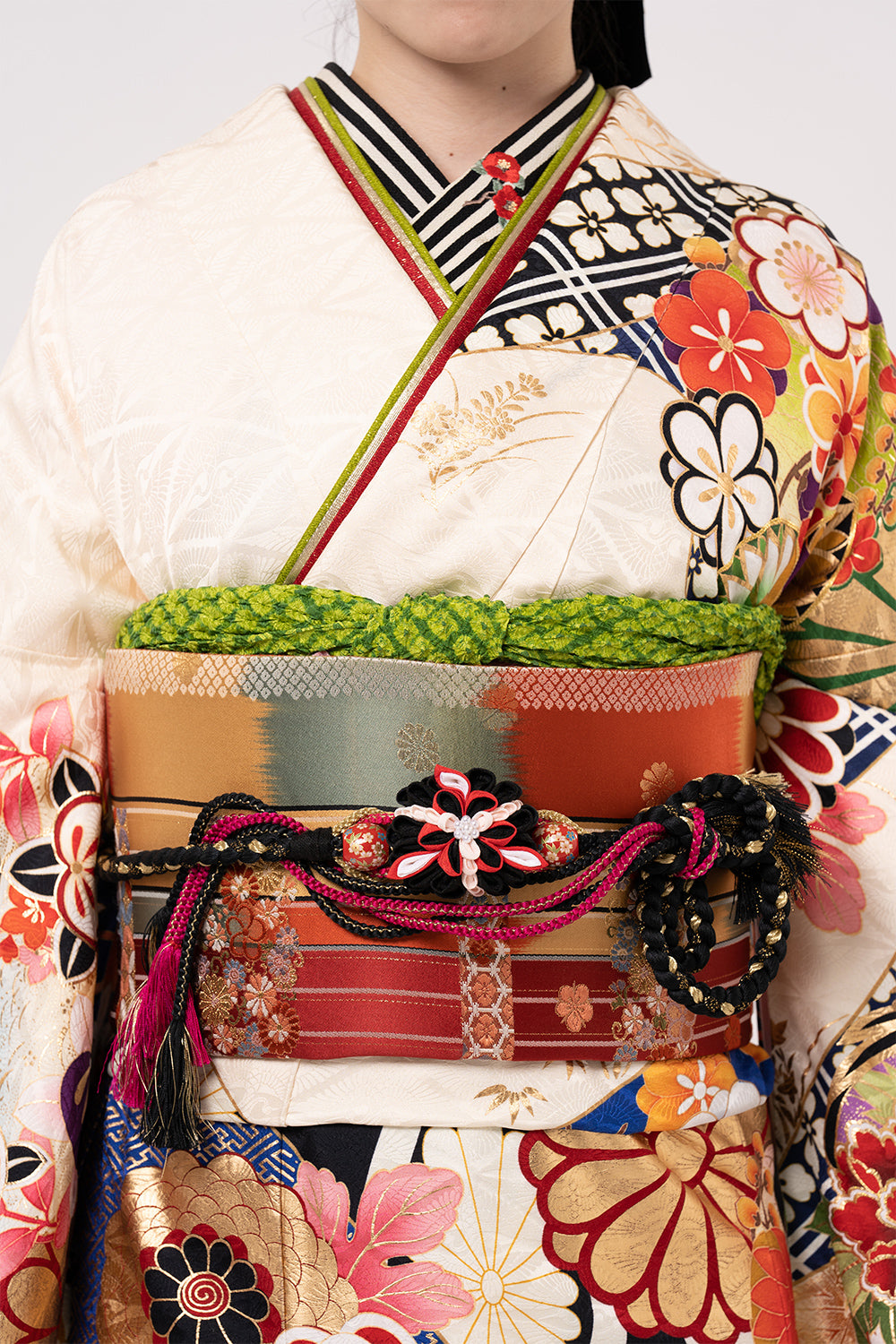 セット内容 振袖 帯 帯締め 帯揚げ 重ね衿 半衿 長襦袢 お草履 バック ※メンテナンス済みのキレイな状態です。
