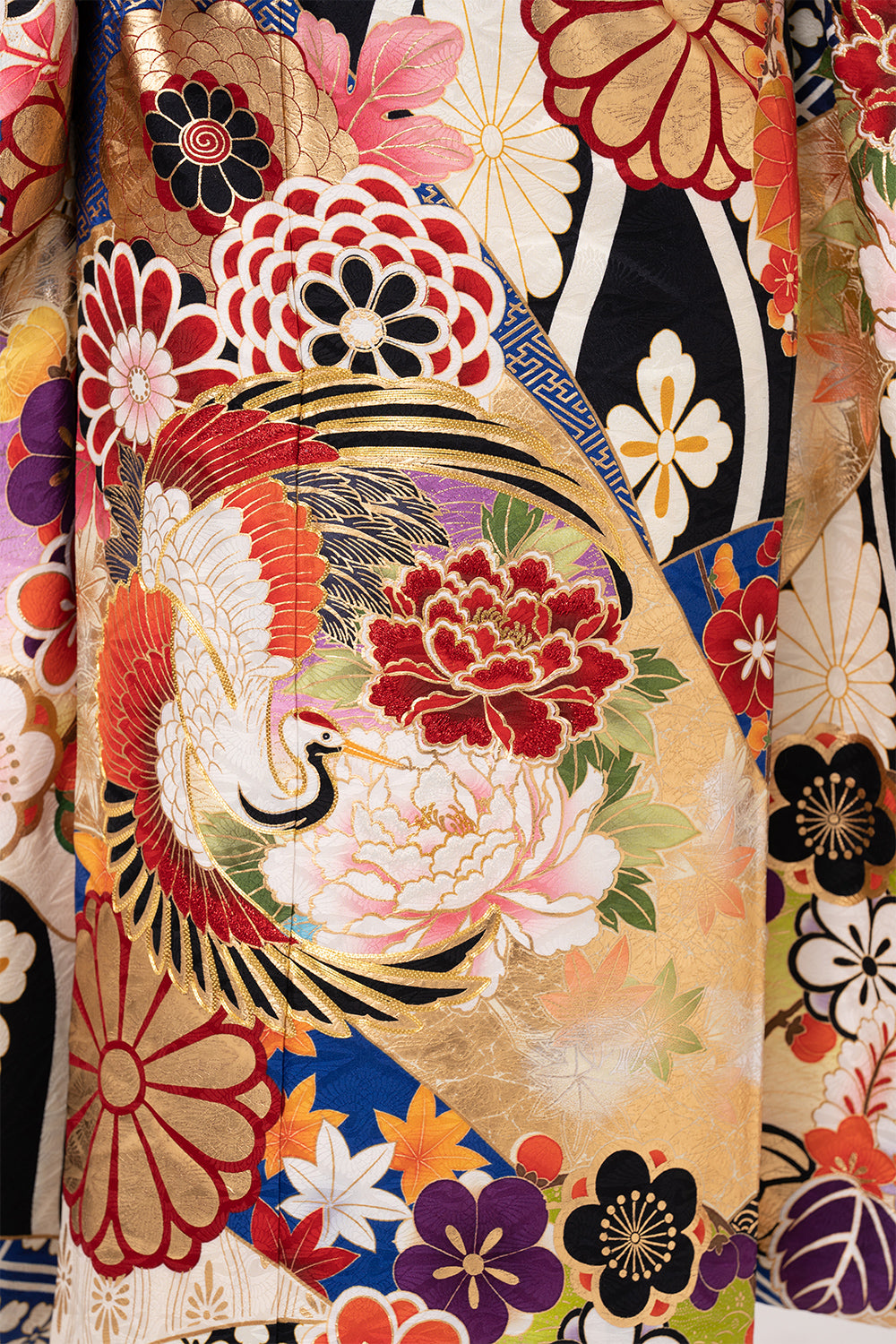 元々は花嫁衣装から参考にデザインされた、個性的で豪華な印象の振袖です。