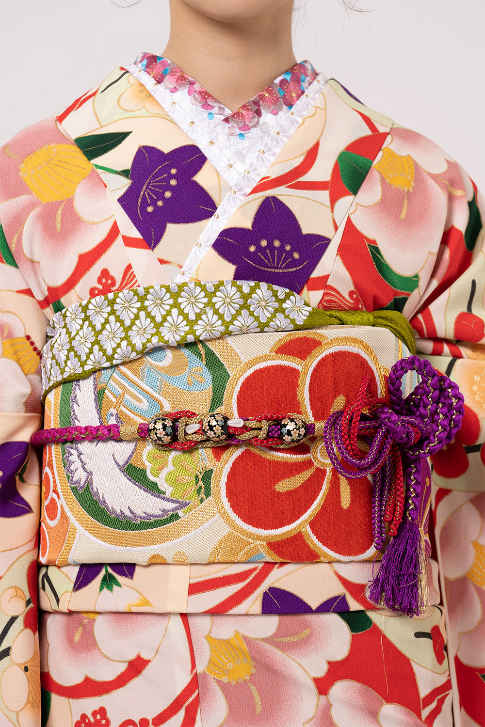 セット内容 振袖 帯 帯締め 帯揚げ 重ね衿 半衿 長襦袢 お草履 バック ※メンテナンス済みのキレイな状態です。