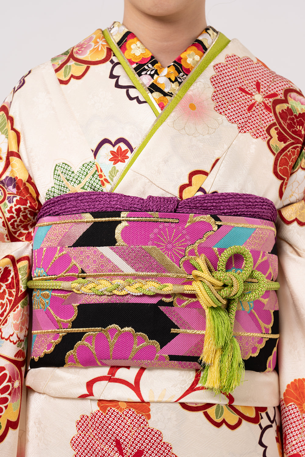 セット内容 振袖 帯 帯締め 帯揚げ 重ね衿 半衿 長襦袢 お草履 バック ※メンテナンス済みのキレイな状態です。